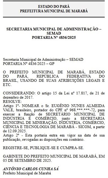A nomeação do novo secretário de Indústria e Comércio de Marabá, publicada discretamente no Diário Oficial, expôs um movimento que vinha sendo articulado nos bastidores e que chegou a ser anunciado pelo jornalista Vinícius Soares. Sem anúncio oficial nas redes sociais e sem a tradicional defesa do perfil “técnico” do escolhido, a Prefeitura preferiu o silêncio.