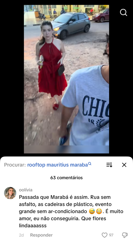 A repercussão nos comentários reforçou a percepção de indignação. Seguidores destacaram o choque entre a imagem vendida da cidade e a estrutura real oferecida à população, citando ruas sem asfalto, espaços públicos improvisados e eventos em locais sem climatização, fatores que reforçam a sensação de atraso urbano mesmo em áreas centrais.