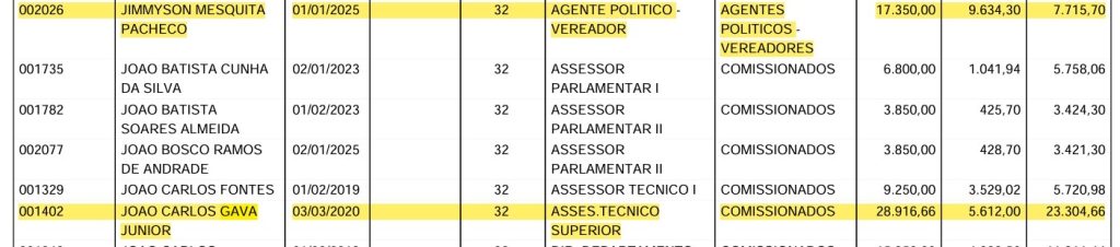 De acordo com o Portal da Transparência, entre janeiro e setembro de 2025, o influenciador recebeu um total de R$ 166.024,11 em rendimentos brutos, somando vencimentos e vantagens. No mesmo período, o vereador Jimmyson Mesquita Pacheco, utilizado como referência, acumulou R$ 155.300,00.